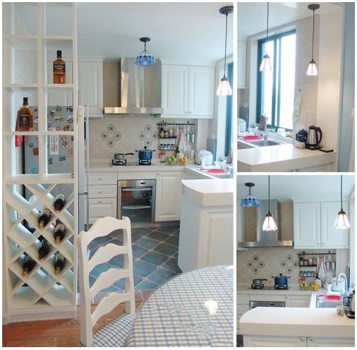 廚房空間不大卻利用的很充分,簡潔的木質架子也能搭出一個高雅的酒柜,很獨特。