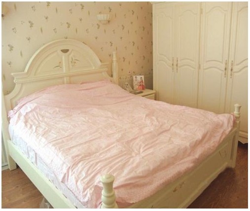 臥室選用甜美純凈的淺粉色,墻紙為簡單的印花圖案,白色的床、衣柜和床頭柜,美式鄉(xiāng)村田園風,寧靜而美好,簡單實用又方便,凝聚了多方面的優(yōu)良特色。