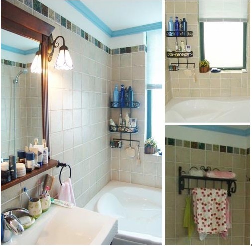 衛(wèi)浴間狹小的空間透亮溫馨。木質邊框的浴室鏡和田園風燈具有效配搭,良好的采光讓整個衛(wèi)浴環(huán)境散發(fā)著強烈的家庭氣息和田園鄉(xiāng)村風情。