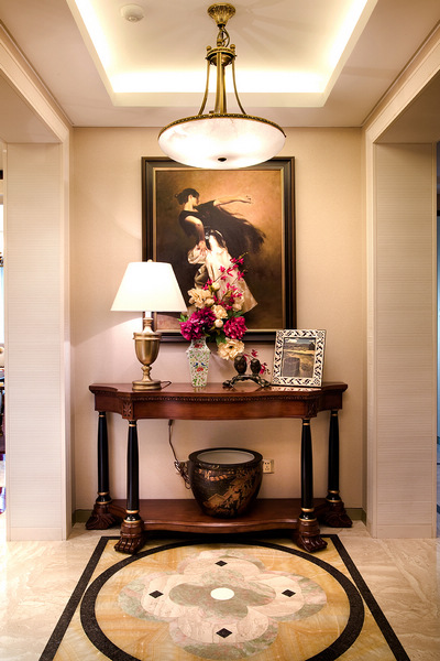 這個(gè)玄關(guān)處的精致豪華,延用了文藝復(fù)興時(shí)期歐式的精致典雅。