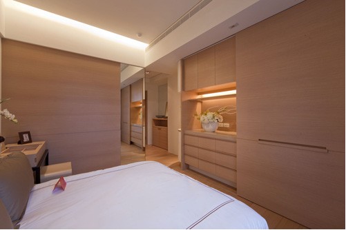 這間臥室的衣柜采用的是橡木飾面板,臥室的墻面采用的是與橡木板相似的防火板。由于記間大面積都是橡木色,由于臥室的空間不是很大,做了衣柜及柜子,床背景就沒(méi)有做了。臥室地面采用的是木地板。讓人一進(jìn)臥室就感覺(jué)很溫馨的家,臥室是自己每天在家呆得到最長(zhǎng)的地方,每天睡覺(jué)的地方,所以是最私密的。強(qiáng)調(diào)居家的實(shí)用性和舒適性,加上燈光的配合給整個(gè)空間營(yíng)造出浪漫的氣氛。