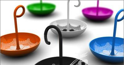 傳統(tǒng)的盤體被設計成了傘面的樣子,同時在盤內增加了一個傘把的設計,這樣一來,就可以直接拎著盤子了。不僅非常有趣,設計也很美觀。