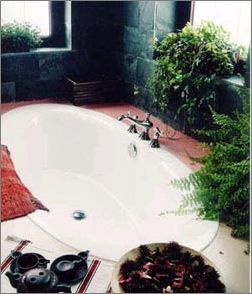 在浴缸 的周圍放置些綠色的植物和玫瑰花瓣以及一壺剛剛泡好的清茶,感覺仿佛又回到了初春時(shí)節(jié),沐浴在溫暖的陽光中,此時(shí)寒冷的勢(shì)力正在快速退出你的身體。