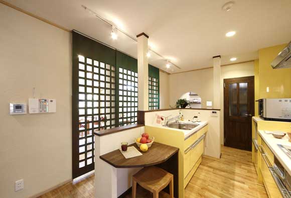 活潑明快的檸檬黃色調(diào)出現(xiàn)在廚房里,配合了全屋的暖色調(diào)。