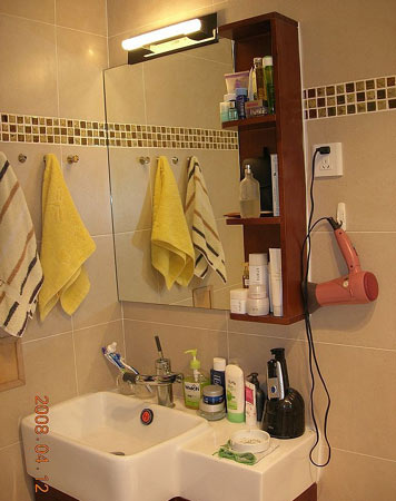 沒(méi)有鏡柜的日常情況,很容易掉東西,要是帶柜子的會(huì)整齊很多