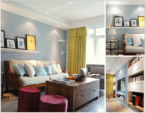 概要: 房間用色干凈、明快,藍色、白色以及原木本色、碎花點綴,有著田園的閑適,地中海的蔚藍。整個室內(nèi)房間采光很好,空間顯得大而通透??蛷d沙發(fā)區(qū)緊鄰著落地的大窗戶,巧妙地將戶外的美景引入到居室內(nèi)。白色的單人沙發(fā),帶有暗花的淡藍色靠枕,以及純色窗簾,把它們組搭在一起,色調(diào)非常清爽。