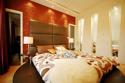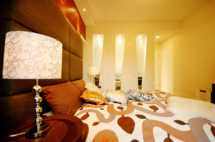 主臥里的背景墻,是時下很多人都特別喜愛的軟包,脫離了硬邦邦的水泥墻面,軟包更有時尚感,也更具舒適度。這里需要重點看下左邊的墻面,它的獨物設計理念不是偶然的,雖說風水學上講,床最好不要對著鏡子,但是這樣的時尚感十足的裝飾,哪個年輕人不愛呢。