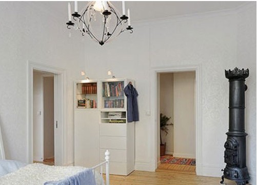 這個(gè)臥室是這個(gè)空間里最大的房間,作為歐洲國家家家必備的裝飾品——壁爐,這里也得以體現(xiàn)。這個(gè)壁爐可謂是整間房子中的點(diǎn)睛裝飾品。收納用的壁柜背靠墻面,大大增長了臥室的存儲(chǔ)空間。置辦一件大容量的收納家具可以更充分地滿足生活需求,讓家人能更有條理更系統(tǒng)地放置和管理物品。