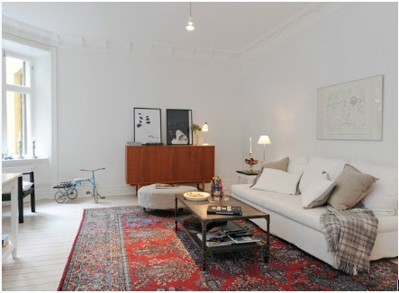大面積紅色印花地毯是整個房間的亮點,民族風情的圖案有著人文氣息與清新自然的環(huán)境協(xié)調融合。簡單的木質家具簡單且時尚,不同深淺的顏色搭配。白色的小清新中有著小小的變化會帶來很大的震撼。