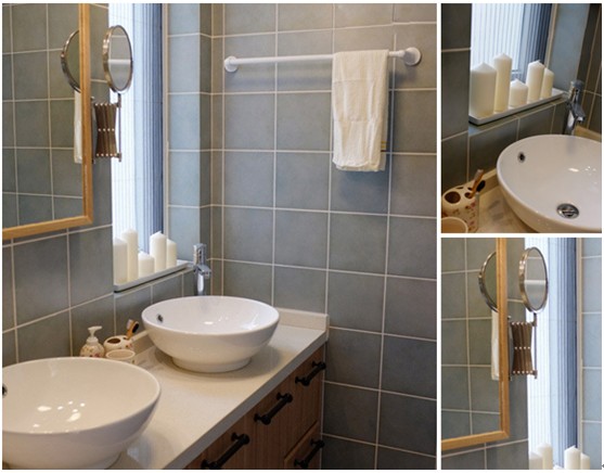 日式風(fēng)格特別能與大自然融為一體,借用外在自然景色,為室內(nèi)帶來無限生機(jī),衛(wèi)浴間臺盆線條圓潤富有質(zhì)感。外加浪漫的燭臺,夜晚來臨讓它來作為主要光源,浪漫而溫馨。