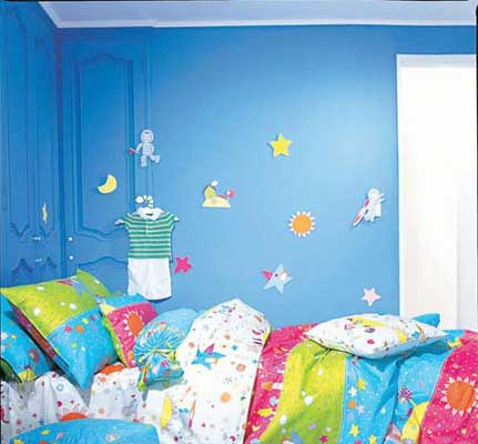 對于性格軟弱過于內(nèi)向的孩子,宜采用對比強烈的顏色,刺激神經(jīng)的發(fā)育。而對于性格太急躁的兒童,淡雅的顏色,則有助于塑造健康的心態(tài)。在裝飾墻面時,切忌用那些猙獰怪誕的形象和陰暗的色調(diào),因為這些飾物會使幼小的孩子產(chǎn)生可怕的聯(lián)想,不利于身心發(fā)育。