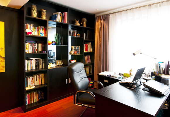 書房里的色彩是黑色系的,穩(wěn)重,低調(diào),正適合書房用途