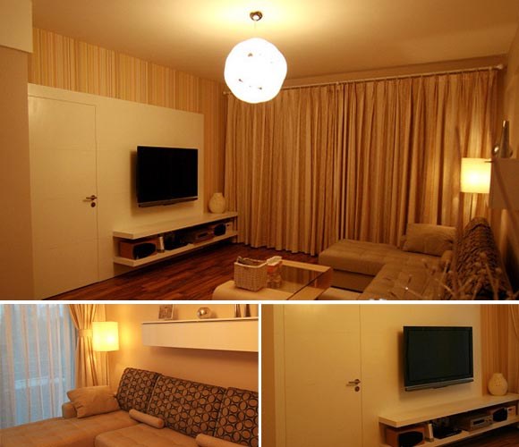 概要: 本套案例是孝順的兒子為父母準(zhǔn)備的房子,因?yàn)樽约汗ぷ鏖L(zhǎng)期出差所以房子的主色調(diào)都父母喜歡的為主。父母亦是剛剛步入中年,家居色彩及設(shè)計(jì)上都是以現(xiàn)代的手法操作。這套90平的房子,處處都顯得溫馨。 從色調(diào)上看,這是一個(gè)溫馨無(wú)比的家。走進(jìn)客廳里,客廳的右手邊是一寬大的落地窗設(shè)計(jì),與天花板同高的米色條紋色窗簾,與客廳的基調(diào)非常的搭配。