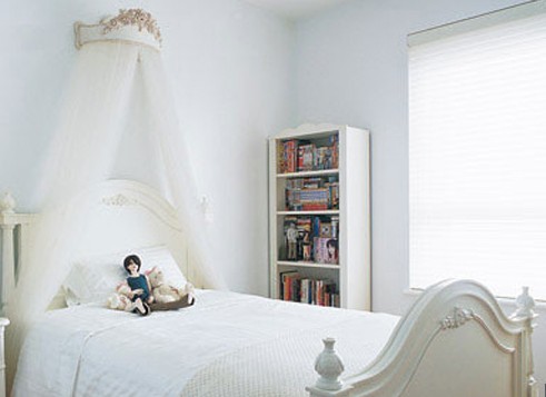霧藍(lán)色的女兒房,純凈無瑕,滿是年少的淡淡輕愁與憧憬。漂亮的床冠裝飾,猶如公主皇冠高貴不凡。