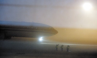 昨天上午11時(shí)許,大霧開始在浦東國(guó)際機(jī)場(chǎng)彌漫,從重慶飛來(lái)的MU5420航班無(wú)法降落而備降虹橋機(jī)場(chǎng),并由此拉開了入港航班備降虹橋、杭州、南京的序幕。約2小時(shí)后,大霧轉(zhuǎn)濃,能見度更低,這段時(shí)間內(nèi)入港航班幾乎全部取消。至下午4時(shí)許,大霧略有散去,能見度有50米左右。但下午6時(shí)左右,大霧又逐漸封鎖住機(jī)坪,許多航班只能轉(zhuǎn)降虹橋及周邊城市機(jī)場(chǎng)。