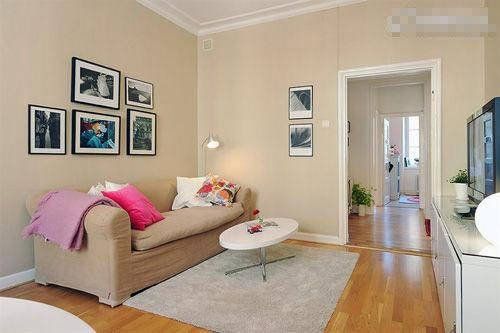 這個(gè)淡淡茶色的墻壁與深色的沙發(fā)相呼應(yīng),有著層次分明的搭配感。而顏色艷麗的軟軟靠墊則又是一鮮明的跳躍感。茶幾是簡(jiǎn)約風(fēng)格的,連同短毛地毯也是簡(jiǎn)潔的裝飾物。電視柜則是一個(gè)很好的收納空間,可以有效的收放家里所有的影碟,樂(lè)盤等等。這個(gè)房型實(shí)用面積不超過(guò)60平,風(fēng)格有點(diǎn)北歐的感覺(jué),不過(guò)卻是用現(xiàn)代的手法裝修,在軟裝飾上借用了北歐,這樣可以放大利用空間。