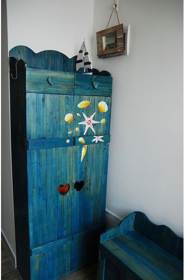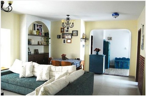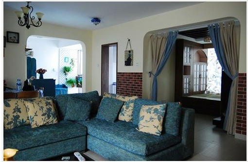 藍(lán)色的沙發(fā)、藍(lán)色的鞋柜、藍(lán)色的小碎花桌布地中海風(fēng)格盡顯眼前!