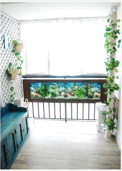 一進(jìn)門就看到水族館,這可歪打正著,家長們說玄關(guān)放魚缸可招財(cái)哦!呵呵 好溫馨!