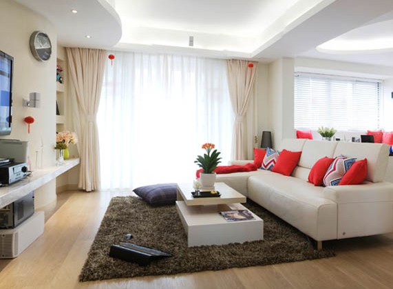 概要: 紅色與白色兩種截然相反的色調(diào),紅色代表**富有活力,白色代表沉靜素雅。而經(jīng)過(guò)精心的設(shè)計(jì)搭配,這兩種色彩一樣可以裝出光彩奪目的美家??紤]色彩對(duì)人們情緒的反射,在色彩搭配上白色則可以大面積使用作為鋪墊,紅色則作為少量的點(diǎn)綴,起到畫龍點(diǎn)睛的作用。功能區(qū)規(guī)劃上,將與客廳相連的房間打通,用沙發(fā)作為隔斷,劃分出會(huì)客區(qū)及休閑閱讀多功能區(qū)??臻g暢通,也沒(méi)有影響使用功能。