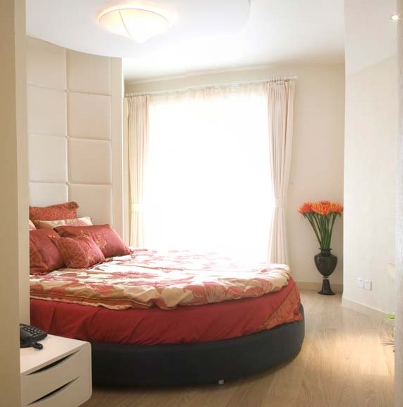 主臥里圓形的大床看著時(shí)尚舒服,全部裝修的材料都是經(jīng)過(guò)精心挑選的,優(yōu)質(zhì)的產(chǎn)品才能體現(xiàn)居住空間的舒適性。