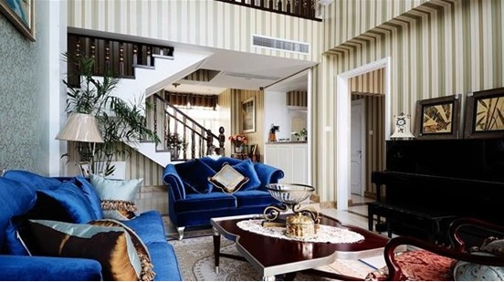 概要: 此套方案坐落于市郊別墅區(qū),山水相連,風景很是美觀。設計師還原生活的本態(tài),對空間語言的精準把握,展現(xiàn)在我們面前的是以列精雕細琢、風格優(yōu)雅的藝術品?! ⊥崎T而入時,那一股貴族藍的氣息就向你迎面襲來,色彩豐富的抱枕裝飾則巧妙地過渡了空間的色澤順序。各式精美的工藝品令人耳目一新,美式古典造型的家具陳列,在提供業(yè)主功能便利性的同時,也賦予空間一種別致的美感。