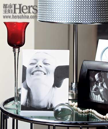 一如,黑色的水晶燭臺、邊框明朗的相框、黑色的紗制燈罩……黑色本身已經(jīng)夠酷了,不如給他點溫柔吧!