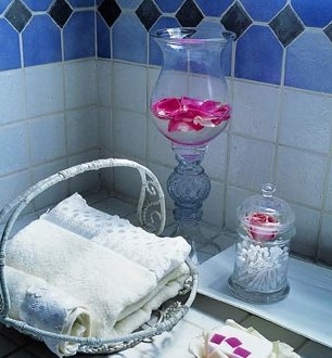 白色、藍色的組合將浴室的潔凈感進一步提升,而些許粉色的點綴又為其注入了絲絲喜悅之情。