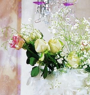 西式婚慶,餐廳可以較多地擺放些鮮花,畢竟鮮艷的色彩與鮮花的喜人,可以大大提升人們用餐時的喜悅感。除了在餐桌中間擺放一個較大的花瓶,并插滿各色鮮花做主體之外,還有很多細節(jié)可以用鮮花點綴。在西式餐桌擺放禮儀中,習(xí)慣預(yù)先將餐具整齊地擺放在餐桌上。因此,可以在菜單上插上小花、用花朵制做餐巾環(huán)、用綠葉制做 餐巾墊等。另外,餐桌椅同樣是鮮花施展美麗的地方,將一些細軟的小花裝扮其上,或者用一些花卉纏繞于椅子上,能制造出更多優(yōu)美、浪漫的婚慶感。