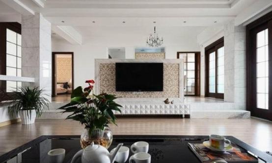 互補(bǔ)才能相得益彰,在空間里,設(shè)計(jì)師沒有過度的去追求新時(shí)代的簡(jiǎn)約設(shè)計(jì),在大面積采用簡(jiǎn)潔手法的同時(shí),用復(fù)雜的墻紙或裝飾來烘托出整個(gè)空間的亮點(diǎn)所在。電視背景墻集美觀與實(shí)用于一身,客廳面看過去是個(gè)造型美觀的電視背景墻,從餐廳觀望過去,卻是個(gè)功能強(qiáng)大的儲(chǔ)物柜。隔斷使得空間更為通透和大氣。