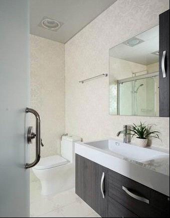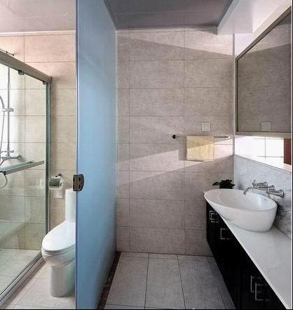 衛(wèi)生間的處理,主衛(wèi)和客衛(wèi)基本上是異曲同工,基本上遵循實(shí)用為主。一盆綠色植物的擺放給整個(gè)空間帶來了靈動(dòng)力;客衛(wèi)采用干濕分離的手法,鏡子這面墻則與餐廳是想通透的,也解決了衛(wèi)生間常年不透氣的敝處。