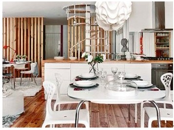 屏風(fēng)是由木條拼制而成來作為玄關(guān)與客廳之間的隔斷,陽光可從夾縫滲入室內(nèi),若隱若現(xiàn)的視覺帶著大自然的氣息。