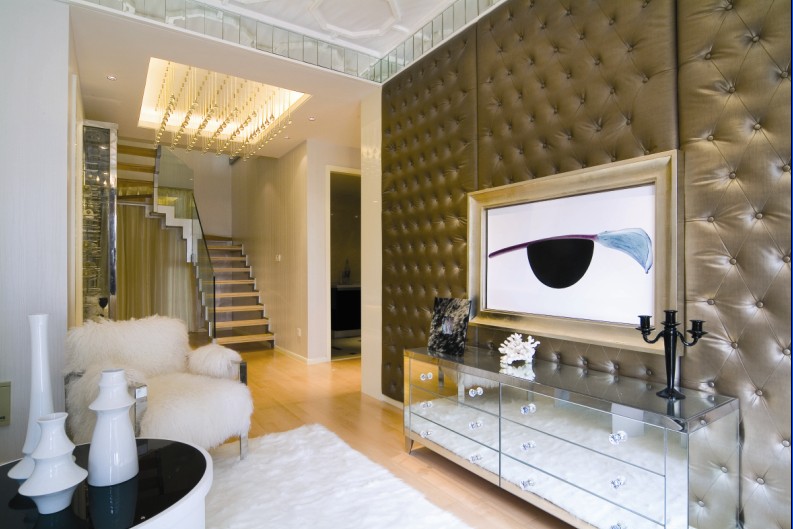 這是一個兩層的復(fù)式躍層空間,以簡約的手法做出奢華的感覺。我們到樓上看看