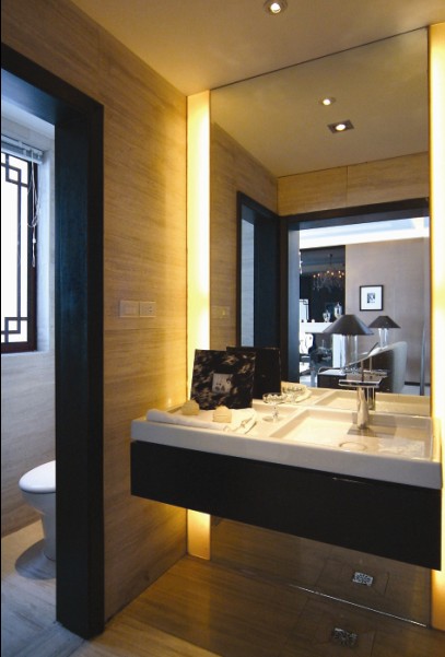 二樓的衛(wèi)生間,延用二樓客廳的咖啡色調(diào)。少去了黑白調(diào)的清冷,多了一點(diǎn)溫馨。