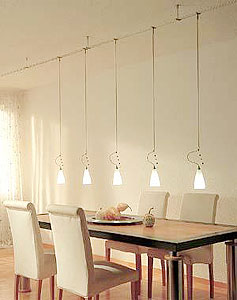 有的家庭餐廳設(shè)有吧臺或酒柜,則可利用軌道燈或嵌如式頂燈加以照明,以突出氣氛。