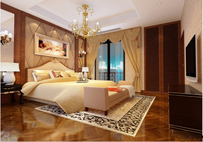 歐式元素被恰到好處地應(yīng)用于各個空間的裝飾中,整所房子的格調(diào)連貫統(tǒng)一。玄關(guān)和衛(wèi)浴間面積都不大,用線條簡練的金箔古典圓鏡裝飾,客廳挑空很高,但在現(xiàn)代思維的主導(dǎo)下,臥室電視后的背景墻拋棄了多余的修飾,一盞華麗的水晶燈是必不可少的,設(shè)計師反復(fù)比較,選擇了造型簡潔又能折射出經(jīng)典光芒的球形水晶燈,它在一片素凈的背景下,展現(xiàn)出一種內(nèi)斂的瑰麗。與水晶燈相呼應(yīng)的是床背景后兩盞壁燈,白色燈罩與墻壁融為一體,含蓄地傾訴著波西米**懷。