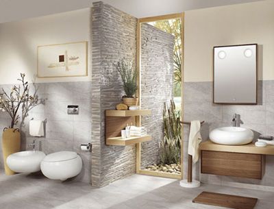 墻面的處理方式應(yīng)該是盡可能地富有想像力,要不就盡量求簡(jiǎn)。在水泥墻上涂上一層油漆會(huì)使浴室增添暖度,而馬賽克玻璃磚,刻花磁磚,甚至板舌以及凹槽處理都能使墻壁的設(shè)計(jì)更為有趣。