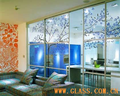 采用貼膜、手繪等方法改變傳統(tǒng)玻璃單一的形象,使之更具裝飾性,能滿足不同空間的需要。