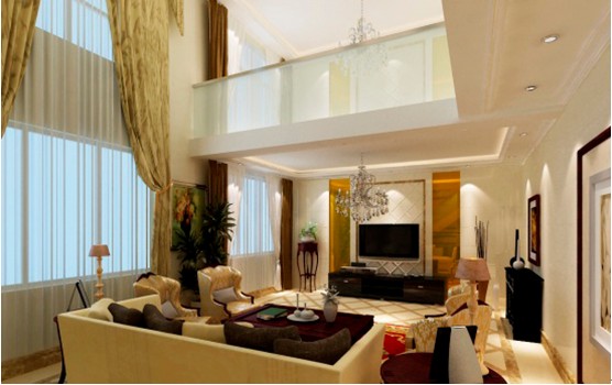 概要: 復式房同樣給人帶來別墅一樣的生活享受。兩層的空間,房間可以滿足各個不同的功能間。本案中主人要求能體現(xiàn)出他的尊貴、典雅、大氣。把復式房做出別墅的奢華感覺。這是挑高的客廳,布置上是風水學里最招財?shù)?,明亮寬敞??蛷d是體現(xiàn)整個居家裝修最重要的位置。我們在方案處理上采用水晶的吊燈、拼花的地面、帶圖案的地毯以及帶紋樣的壁紙。這樣無一不散發(fā)出他的尊貴氣質(zhì)。