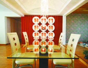 家居設(shè)計(jì)中重復(fù)的構(gòu)成元素有很多,主要是指形狀、顏色、大小等方面。比如中式設(shè)計(jì)中的窗格,可以用在隔斷、墻面、屏風(fēng)、展示架等各個(gè)方面,通過(guò)這種重復(fù)使用的方式加深中式家居風(fēng)格給人的印象,同時(shí),也讓家居中的每一個(gè)空間都有統(tǒng)一的主題。