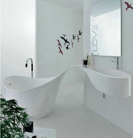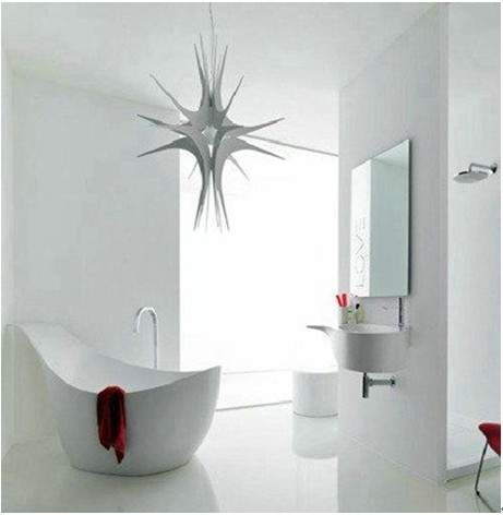 白色是最美好的背景色,它總顯得那么純潔和無瑕。有了白色就有了形態(tài),有了空間。優(yōu)雅的白色浴缸,勾勒出一道美麗的弧線,貌似一艘擱淺的小船,躺在這里會(huì)讓你很快放松身心。在這樣的純白空間內(nèi),必定要選擇一款同種風(fēng)格的燈飾,一盞出色巧妙的燈具令整個(gè)空間熠熠生輝,白色也可以很精彩!