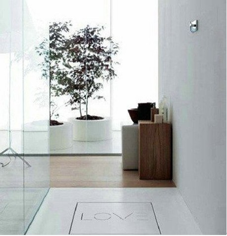 為了使白色的空間不會(huì)顯得那么枯燥無味,在浴室內(nèi)安置了大件綠色植物,來充填空間的生氣,這也是諾弗洛設(shè)計(jì)理念的一大特色。置身于這樣浴室溫泉猶如室外溫泉區(qū)一般。地面上印著的"LOVE”,體現(xiàn)了設(shè)計(jì)師的浪漫因子居多,讓人一踏進(jìn)衛(wèi)浴間就可以感受到溫馨和浪漫。