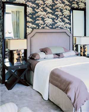 素雅與華美構(gòu)筑的溫馨氣氛,突出了簡約生活的精致與舒適;象征延年益壽的松柏圖案,在古樸中融入更多現(xiàn)代色彩,其大面積的夸張運(yùn)用,并沒有與空間產(chǎn)生不和諧之感。