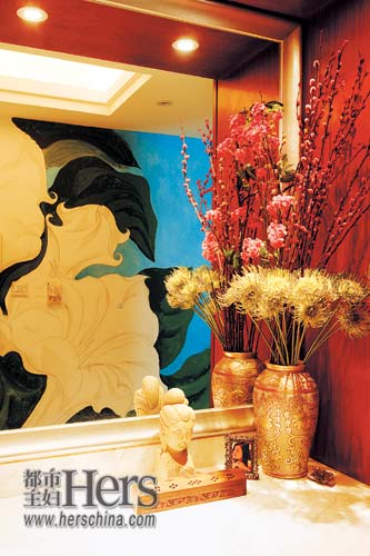 Canna的家自由而隨性,明媚的色彩如同女主人燦爛的微笑。推開她家的門,每個人都會為玄關(guān)墻上的大幅手繪壁畫拍手叫好??炊嗔速N著碎花墻紙或者純色墻壁,很難想到一個小女子會在白墻壁上做如此大膽的創(chuàng)新。海藍(lán)色的底面、四五朵巨型的花,花瓣近半米,未完成的有力線條勾勒,誘惑的曲線映襯著墻,顯示出原始的美麗,一副妖艷而絢爛的光景。這是Canna在英國學(xué)設(shè)計的朋友為她特地畫的牽?;āK粺o遺憾地說,“可惜時間太緊了,還是沒來得及全畫完,他就飛去英國……不過等他回來接著來完成?!?而客廳的鋼琴旁和主臥的墻壁上也掛著鮮艷的動人的畫幅,充滿熱帶氣息的花朵占據(jù)著畫面,像嬌媚的桃紅色、清新的亮綠、火焰般的大紅為安靜的家?guī)頍o限的生機(jī)與樂趣。
