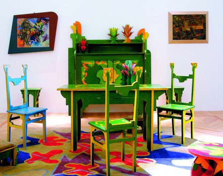這套搭配運用的雖然都是古典元素,圖片但效果極為現(xiàn)代,家具、地毯甚至連裝飾品都圖片非常立體,墻上的兩幅油畫,都是立體派風格圖片。整個房間的搭配非常和諧、有趣、獨特。