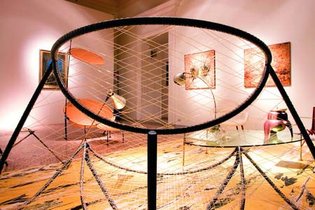 可借鑒之處:相對來講,現(xiàn)代圖片空間適合各種畫,非常好搭配,但要注意的是圖片過于細膩和具象的風景寫生、靜物、人物肖像圖片都不適合這里。