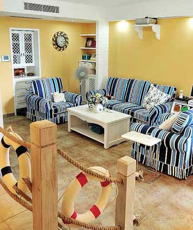 例如墻面為淺藍(lán)色,沙發(fā)則可選深藍(lán)色,抱枕則選用對(duì)比的橘色或沖突的紅色或是多色的圖樣。最好再加以一盆綠色喬木盆栽。大地色搭配永不失敗,因其來(lái)自自然界。