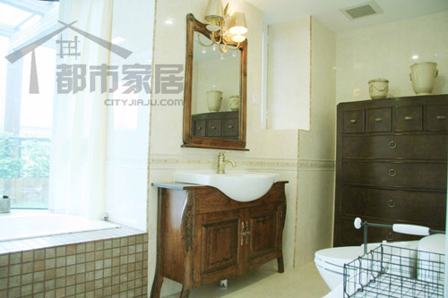 衛(wèi)浴間擔(dān)負(fù)著諸多現(xiàn)代化的實(shí)用功能,原本小編以為這里會(huì)是以簡(jiǎn)約風(fēng)格為主導(dǎo),沒(méi)有太大的驚喜,但沒(méi)想到這里居然被中式風(fēng)格占了上風(fēng)!鏡子、浴室柜、收納柜統(tǒng)統(tǒng)都是古香古色的中式家具,不僅風(fēng)韻十足,實(shí)用性也毋庸置疑。設(shè)計(jì)師告訴小編這些家具都是從潘家園一帶淘回來(lái)的,業(yè)主很對(duì)此很是欣賞呢!