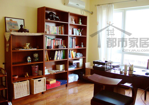 功能性使然,書房的風(fēng)格比較嚴(yán)謹(jǐn),簡(jiǎn)單的木制家具和藤編收納框營(yíng)造出恬淡的氣氛。