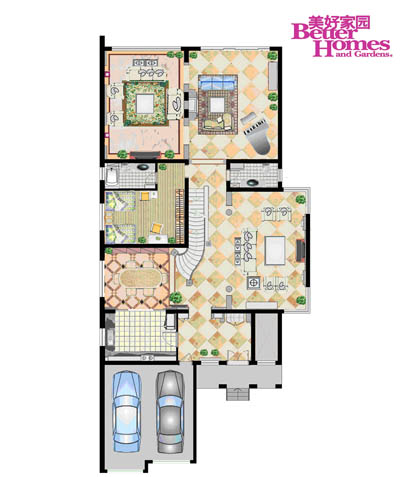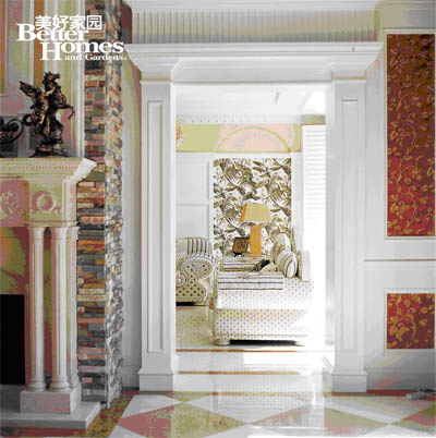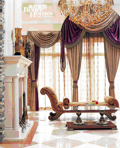 圖1:客廳的硬裝基礎(chǔ)氣質(zhì)硬朗,所以在家具的造型、壁紙的圖案、窗簾的形式中大量地運(yùn)用柔美優(yōu)雅的曲線破解, 平衡了橫平豎直的硬板。在不動(dòng)聲色中達(dá)到視覺平衡、以柔克剛的效果。