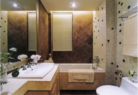 衛(wèi)生的仿古磚讓古典的空更具奢華感。墻面的瓷磚拼花及仿古磚色彩的區(qū)分讓衛(wèi)生間的小小空間也是層次分明,空間的大小與做到層次分明有時候是沒有直接關(guān)系的,色彩的深淺讓我們從視覺上就得很好的辨別。